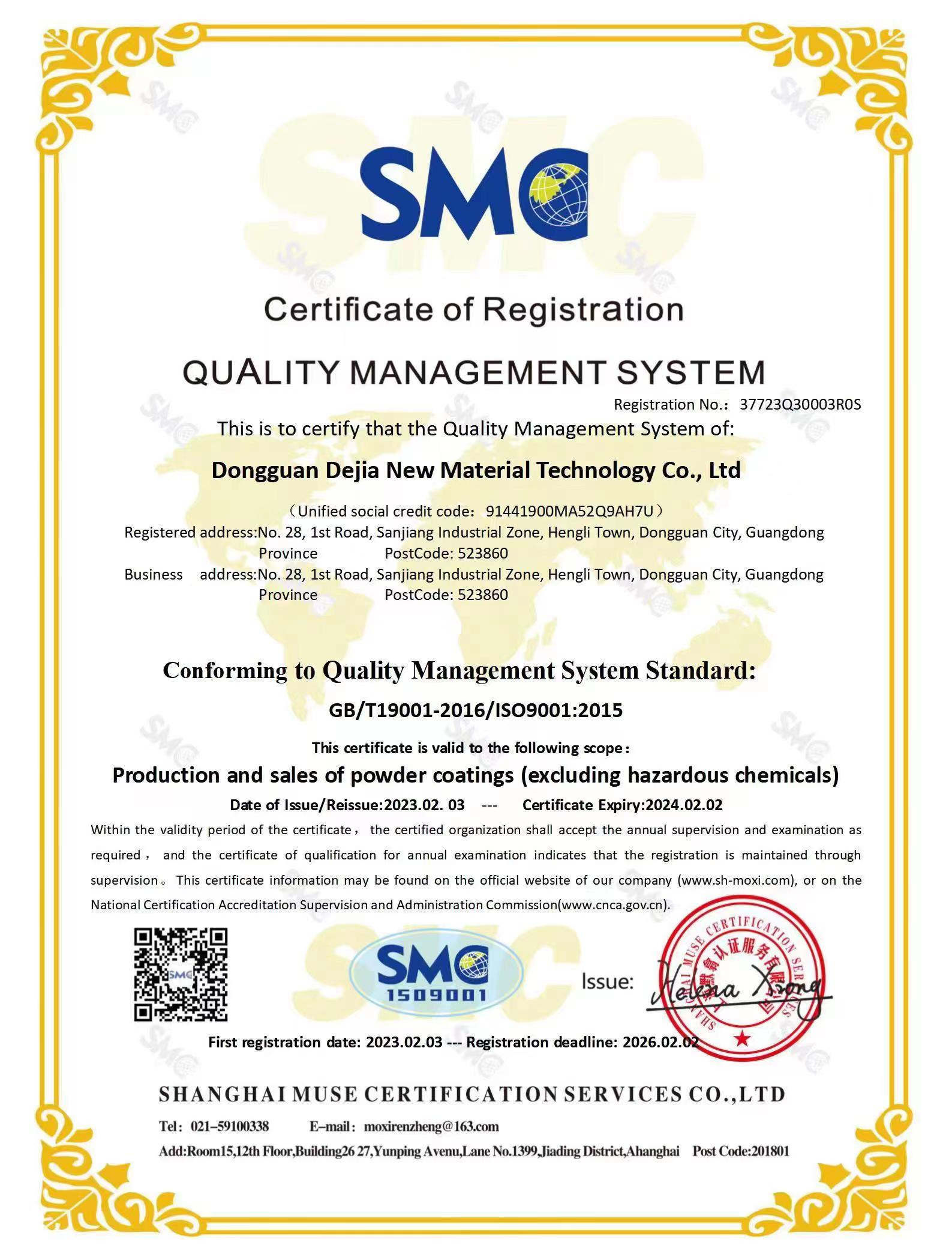 ISO9001:2015 REACH Rohs
